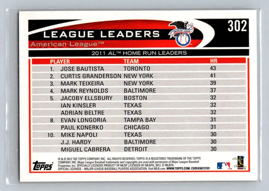 2012 Topps #302 2011 AL HR Leaders (Bautista /Granderson /Teixeira)