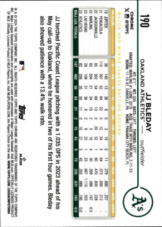 2024 Topps Chrome #190 JJ Bleday NM-MT Oakland Athletics Baseball Card