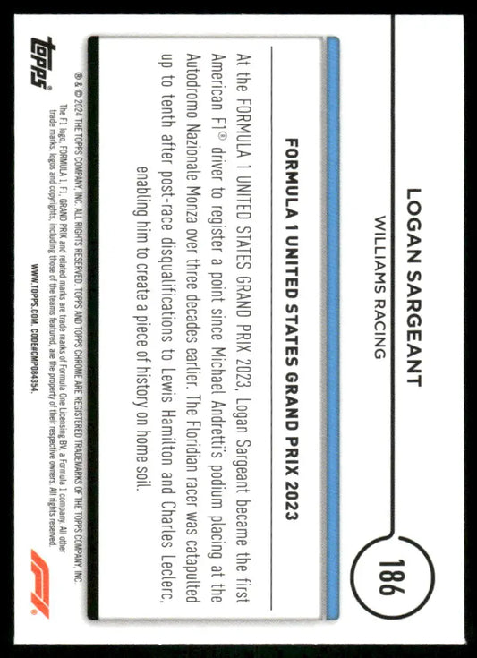 2024 Topps Chrome F1 Logan Sargeant #186 Award Winners Racing