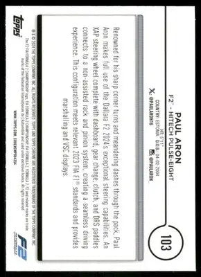 2024 Topps Chrome Formula 2 Paul Aron #103 Auto Racing
