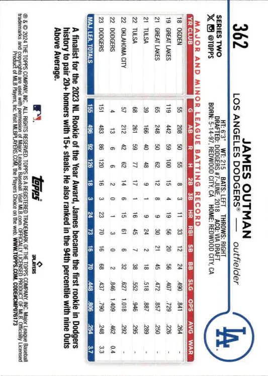 2024 Topps #362 James Outman NM-MT Los Angeles Dodgers Baseball Card
