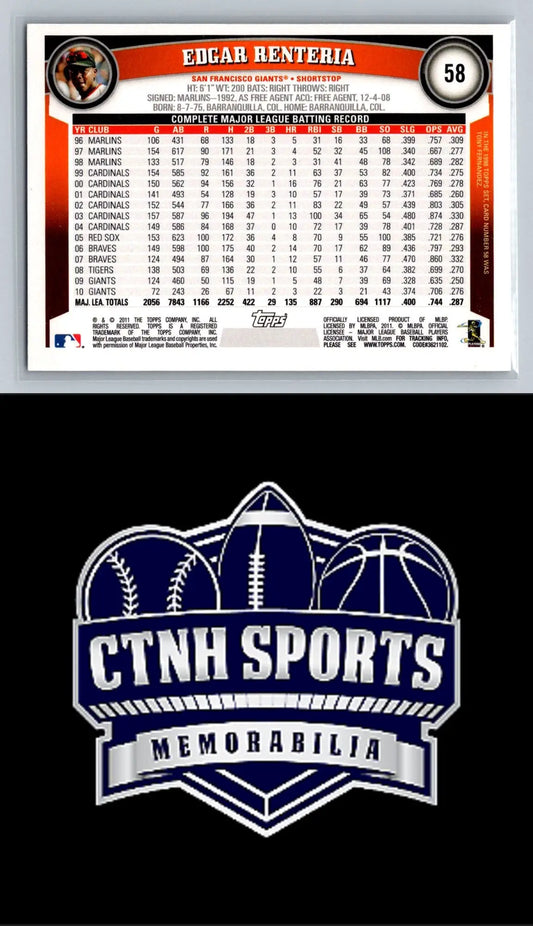 2011 Topps #58 Edgar Renteria Diamond Anniversary San Francisco Giants