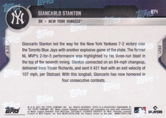 2021 TOPPS NOW #874 GIANCARLO STANTON- NEW YORK YANKEES