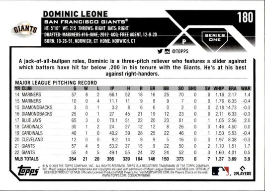 2023 Topps #180 Dominic Leone NM-MT San Francisco Giants Baseball Card
