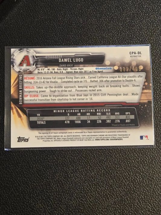2017 Bowman Chrome #CPA-DL Dawel Lugo Prospect Autographs Refractor #/499
