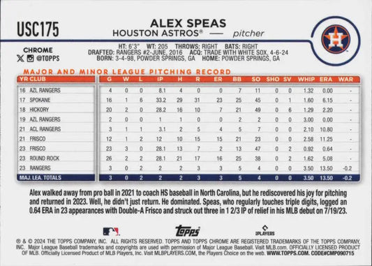 2024 Topps Chrome Update Refractor Prism #USC175 Alex Speas NM-MT RC