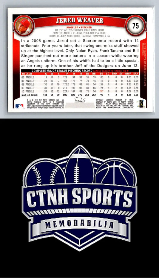 2011 Topps #75 Jered Weaver Diamond Anniversary Los Angeles Angels