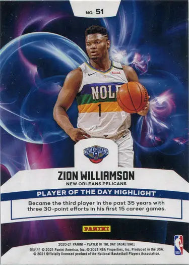 Panini Player of the Day 2020-21 Base Card 51 Zion Williamson