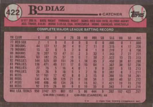 1989 Topps #422 Bo Diaz NM-MT Cincinnati Reds Baseball Card