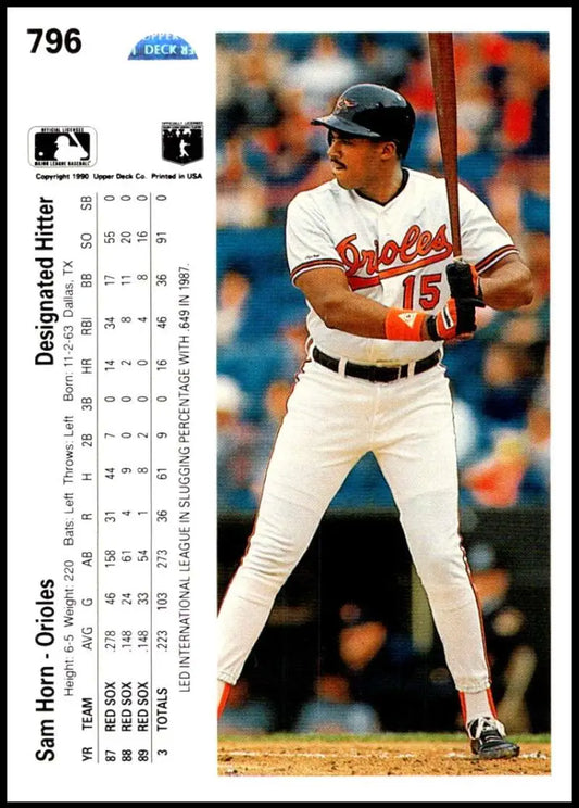 1990 Upper Deck #796 Sam Horn NM-MT Baltimore Orioles Baseball Card