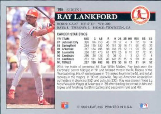 1992 Leaf #195 Ray Lankford NM-MT St. Louis Cardinals Baseball Card