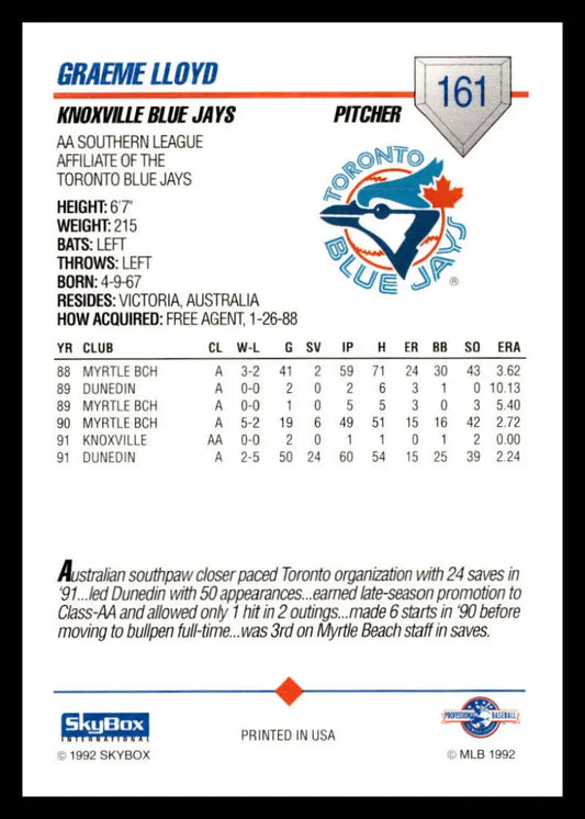 1992 Skybox AA #161 Graeme Lloyd Knoxville Blue Jays NM-MT Baseball Card