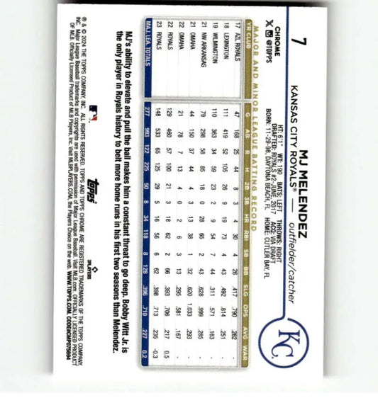 2024 Topps Chrome Refractor Pink #7 MJ Melendez NM-MT Kansas City Royals Baseball Card