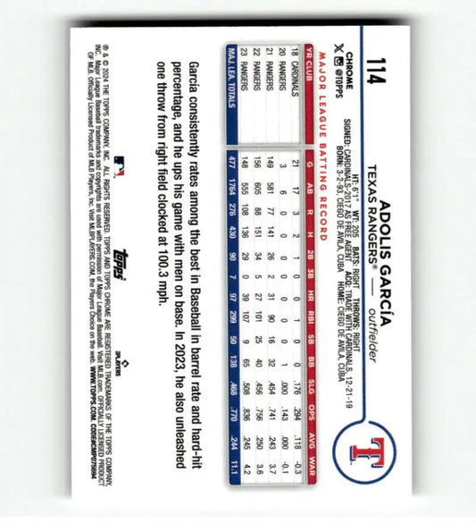 2024 Topps Chrome Refractor Prism #114 Adolis Garcia NM-MT Texas Rangers Baseball Card