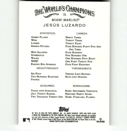 2024 Allen & Ginter #70 Jesus Luzardo NM-MT Miami Marlins Baseball Card