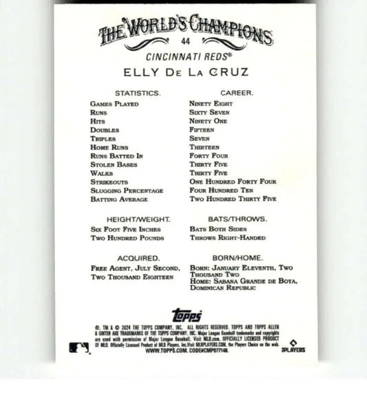 2024 Allen & Ginter #44 Elly De La Cruz NM-MT RC Rookie Cincinnati Reds Baseball Card