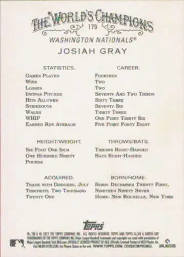 2022 Topps Allen and Ginter #179 Josiah Gray NM-MT RC Rookie Nationals ID:49160