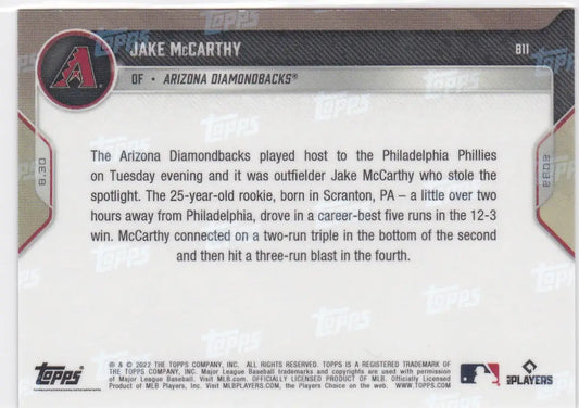 2022 TOPPS NOW #811 JAKE MCCARTHY- ARIZONA DIAMONBACKS