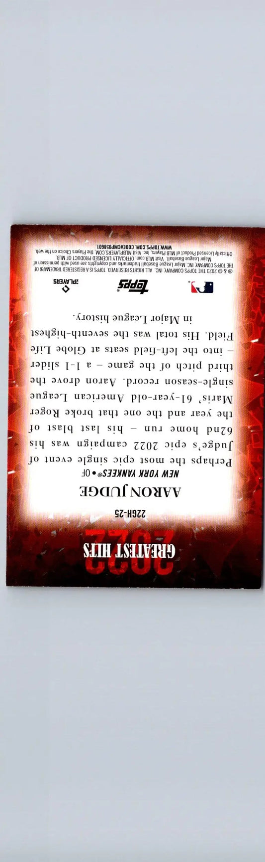 2023 Topps #22GH-25 Aaron Judge 2022 Greatest Hits