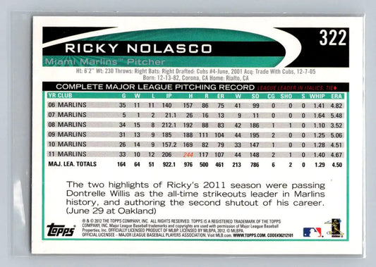 2012 Topps #322a Ricky Nolasco Miami Marlins