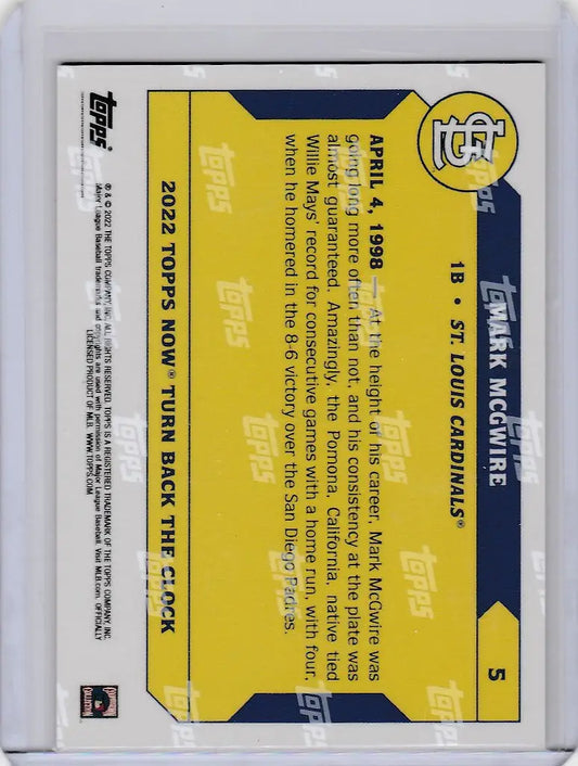 2022 TOPPS TURN BACK THE CLOCK CHERRY PARALLEL #5 MARK MCGWIRE CARDINALS 5/7