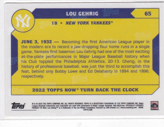 2022 TURN BACK THE CLOCK #65 LOU GEHRIG- NEW YORK YANKEES
