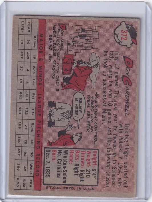 1958 Topps #372 Don Cardwell - Philadelphia Phillies