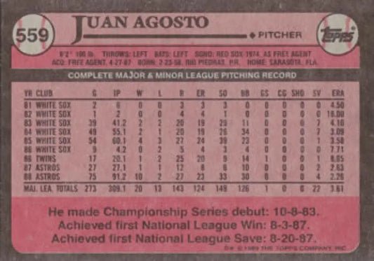 1989 Topps #559 Juan Agosto NM-MT Houston Astros Baseball Card