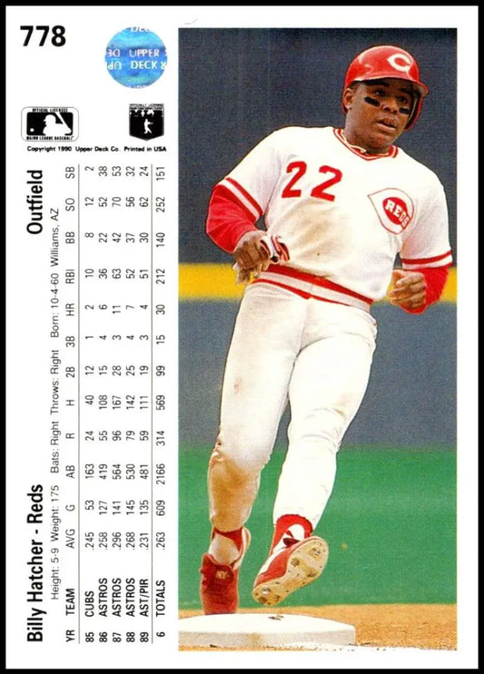 1990 Upper Deck #778 Billy Hatcher NM-MT Cincinnati Reds Baseball Card