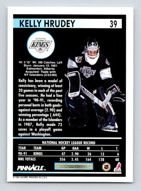 1991-92 Pinnacle #39 Kelly Hrudey NM-MT Los Angeles Kings Hockey Card