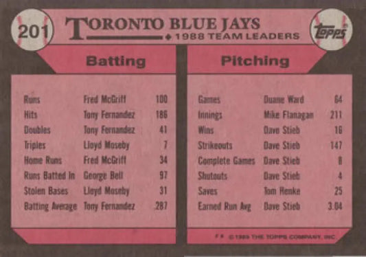 1989 Topps #201 Kelly Gruber Toronto Blue Jays TL NM-MT Toronto Blue Jays Baseball Card