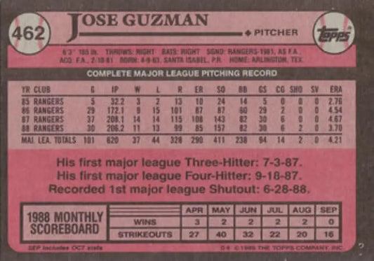 1989 Topps #462 Jose Guzman NM-MT Texas Rangers Baseball Card
