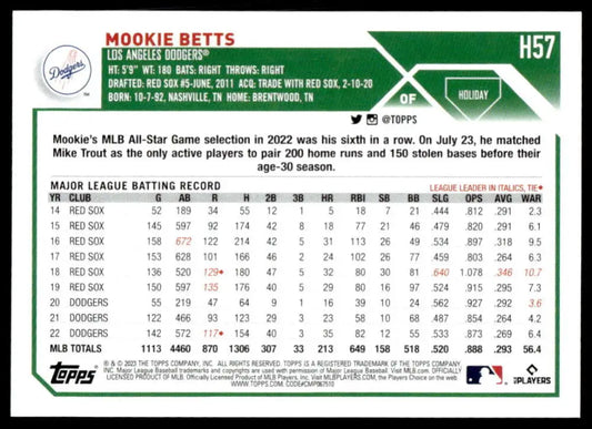 2023 Topps Holiday #H57 Mookie Betts NM-MT Los Angeles Dodgers Baseball Card