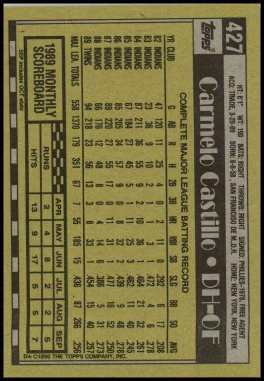 1990 Topps #427 Carmen Castillo NM-MT Minnesota Twins Baseball Card