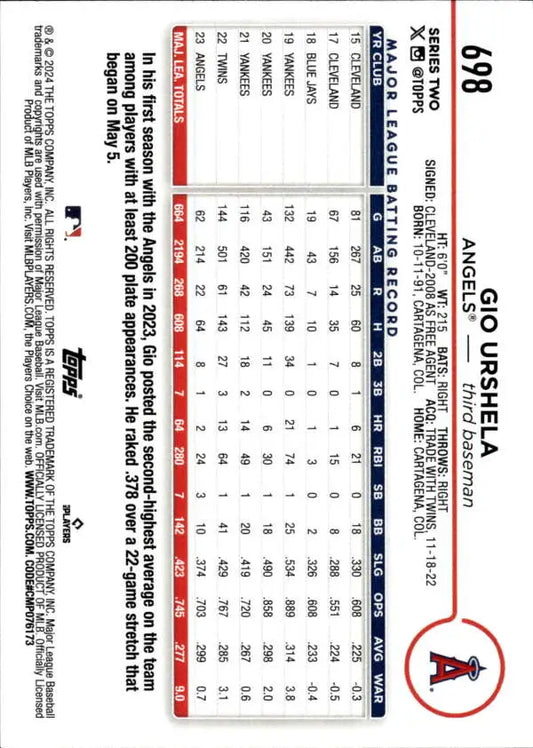 2024 Topps #698 Gio Urshela NM-MT Los Angeles Angels Baseball Card