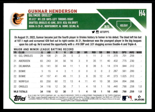 2023 Topps Holiday #H4 Gunnar Henderson NM-MT RC Rookie Baltimore Orioles Baseball Card