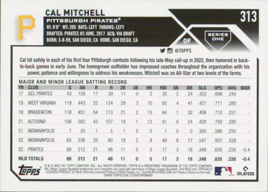 2023 Topps #313 Cal Mitchell NM-MT RC Rookie Pittsburgh Pirates Baseball Card