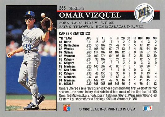 1992 Leaf #265 Omar Vizquel NM-MT Seattle Mariners Baseball Card