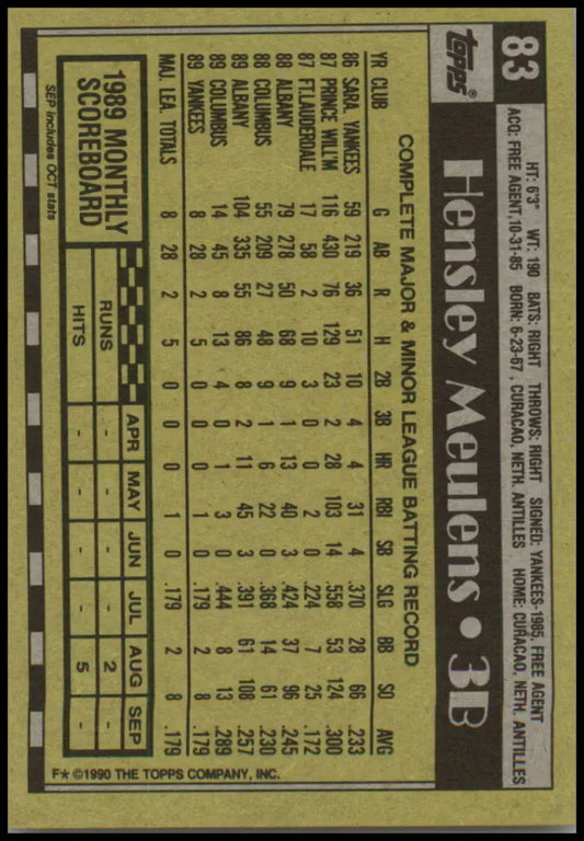 1990 Topps #83 Hensley Meulens NM-MT New York Yankees Baseball Card
