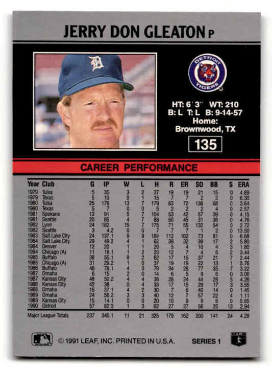 1991 Leaf #135 Jerry Don Gleaton NM-MT Detroit Tigers Baseball Card