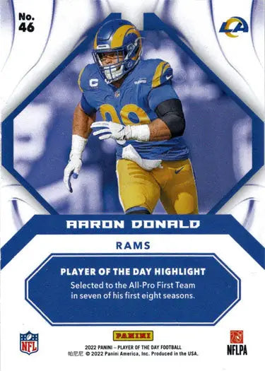 Panini Player Of The Day Football 2022 Foil Parallel Card 46 Aaron Donald