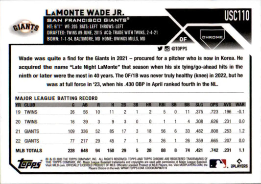 2023 Topps Chrome Update #USC110 LaMonte Wade Jr. NM-MT San Francisco Giants Baseball Card