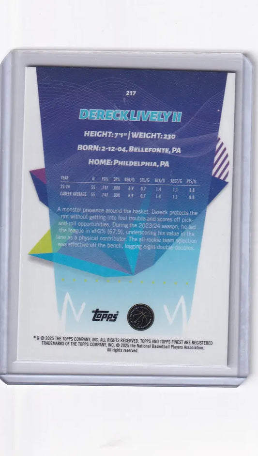 2024-25 Finest Basketball Purple 29/75 #217 Dereck Lively II - Dallas Mavericks