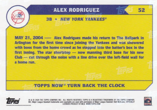 2020 TURN BACK THE CLOCK #52 ALEX RODRIGUEZ- NEW YORK YANKEES