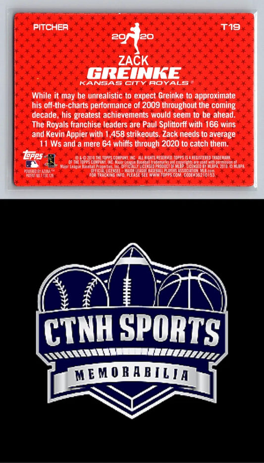 2010 Topps #T19 Zack Greinke 2020 Kansas City Royals