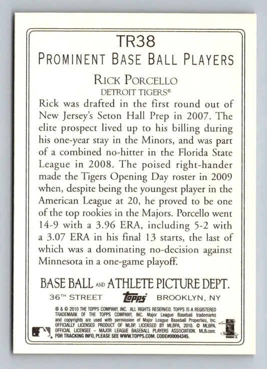 2010 Topps #TR38 Rick Porcello Turkey Red Detroit Tigers
