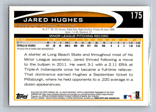 2012 Topps #175a Jared Hughes Pittsburgh Pirates Rookie