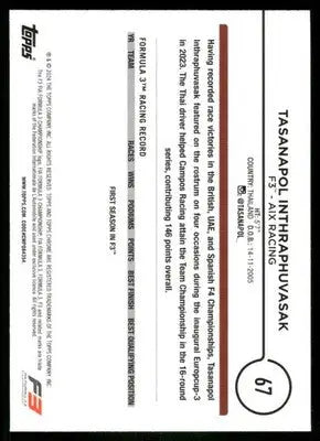2024 Topps Chrome Formula 3 Future Stars Tasanapol Inthraphuvasak #67
