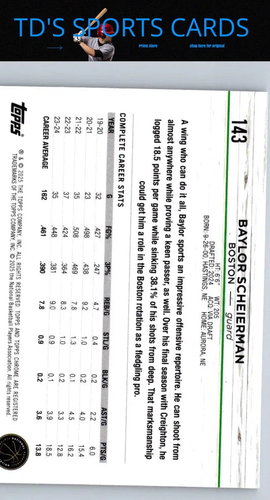 2024-25 Topps Chrome #143 Baylor Scheierman