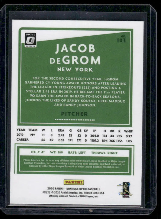 2020 Donruss Optic Jacob deGrom #103 Baseball